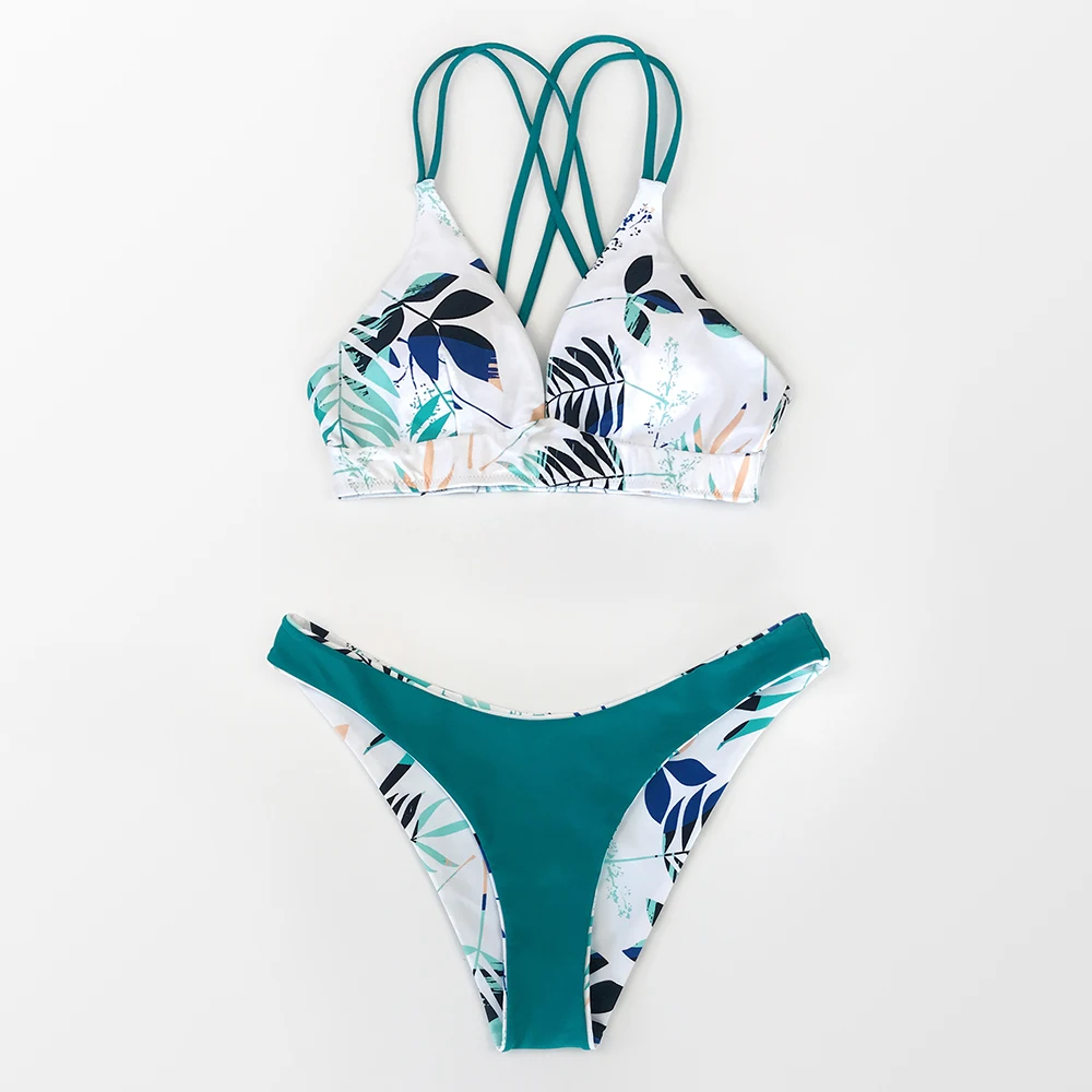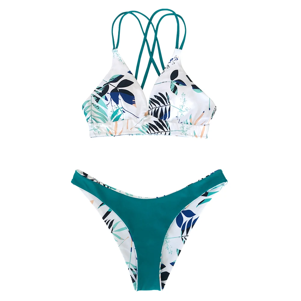 Милый и кокетливый! Наше двустороннее бикини с листьями и ремешками-это любимая модель. Топ бикини с двойными перекрещивающимися бретелями на спине. Подходящая нижняя часть бикини двусторонняя-одна сторона имеет принт с листьями, а другая однотонная бирюзовая. Смешайте и Сочетайте этот комплект бикини с листьями, чтобы создать свой собственный внешний вид!