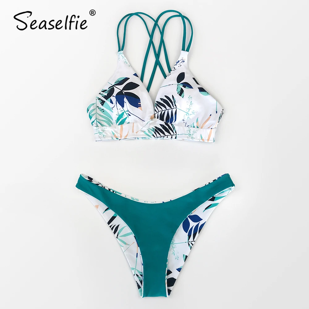 SEASELFIE тропические бикини с глубокой вырезом и низкой талией, ко...
