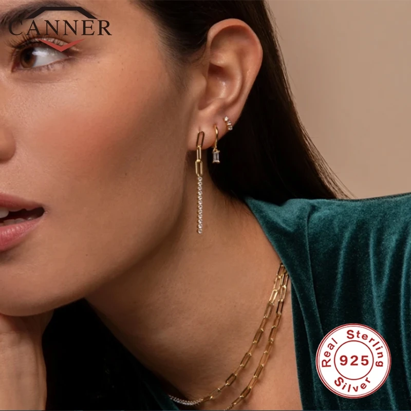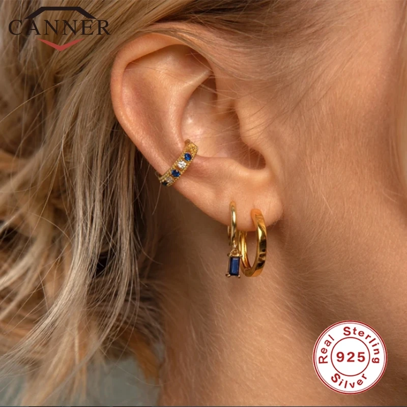 Женские серьги-кольца CANNER, круглые минималистичные Разноцветные серьги из настоящего серебра 925 пробы с серьги из циркона, украшения