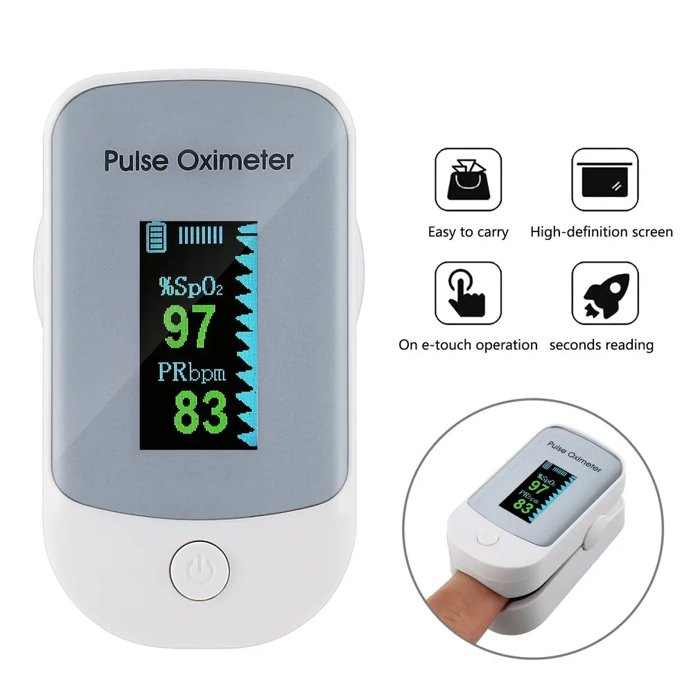 1. Широкое применение: просто нажмите кнопку, Пальчиковый измеритель кислорода в крови для легкого использования, отлично подходит для больниц, кислородных балок, общественного здоровья и спорта, любителей спорта и всех семей.