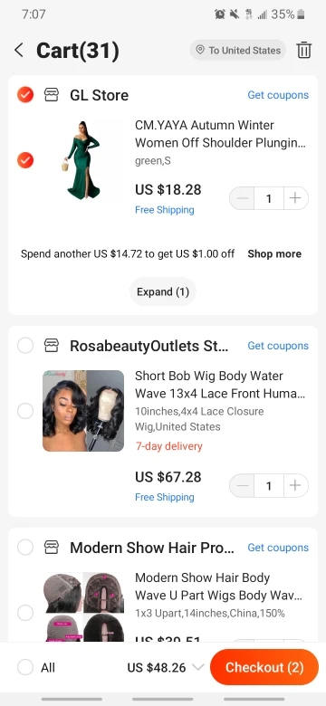 Я заказал парик 1*3 U. Они прислали мне 2*4. После отправки изображений и нескольких сообщений мне сказали, что мне нужно будет отправить его, оплатите доставку за 16 долларов, и они вернут мне деньги за эту стоимость. AliExpress не допускает возврата денег выше, чем то, что было оплачено. Затем они солгли и сказали мне, что отправят мне стоимость доставки через PayPal, затем они сказали, что их PayPal имеет проблемы. В основном я был разочарован продуктом и был готов отправить его обратно, но теперь я еще больше разочарован процессом поиска денег.