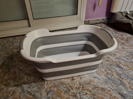 La bañera es como en la foto. Bonita y bien plegable. Muy útil para bañar a mi perro. Llegó pronto y bien protegida . Gracias señor vendedor. Feliz Año.