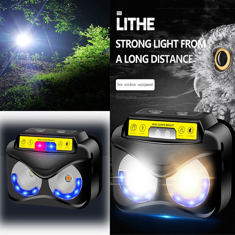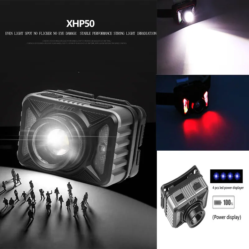 Светодиодный головной фонарь XHP50, суперъяркий Головной фонарь с зарядкой от USB, с датчиком движения тела, водонепроницаемый, для кемпинга