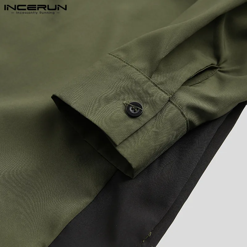 Мужской лоскутный Топ INCERUN, с воротником-стойкой и длинным рукав...
