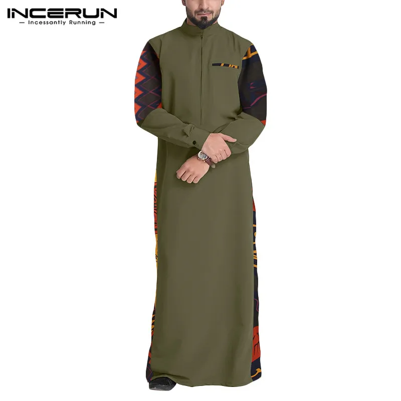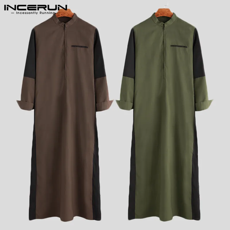 INCERUN мусульманские мужские кафтан исламские халаты с длинным рукавом стоячий воротник лоскутное винтажное повседневное Jubba tobe арабский мужская одежда S-5XL
