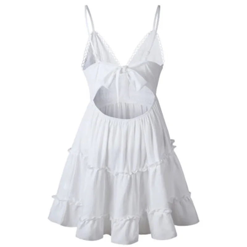 Платье женское пляжное с бантом и открытой спиной, пикантное Белое ...