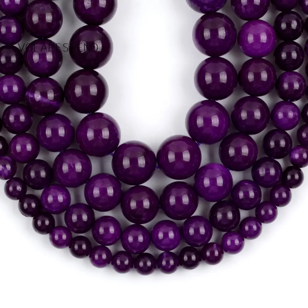 Название камня: натуральный фиолетовый сугилит круглые каменные бусины