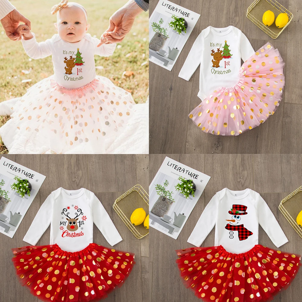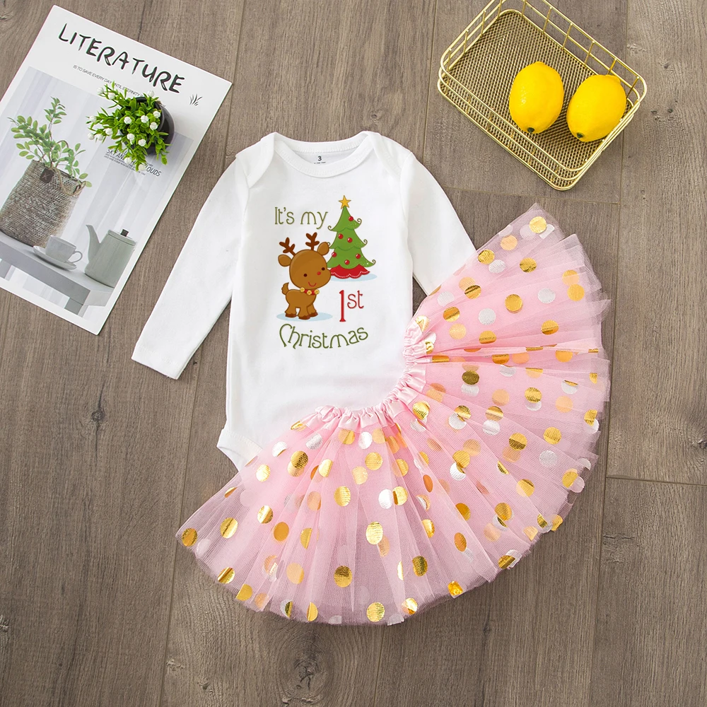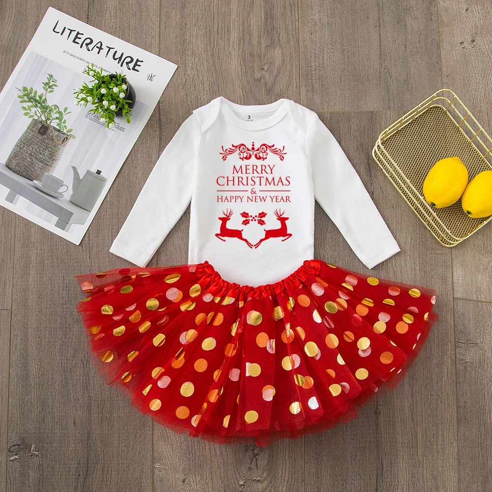 Комбинезон с принтом рождественских букв «My First» + детская юбка-пачка, одежда с длинными рукавами для новорожденных девочек Рождественская одежда