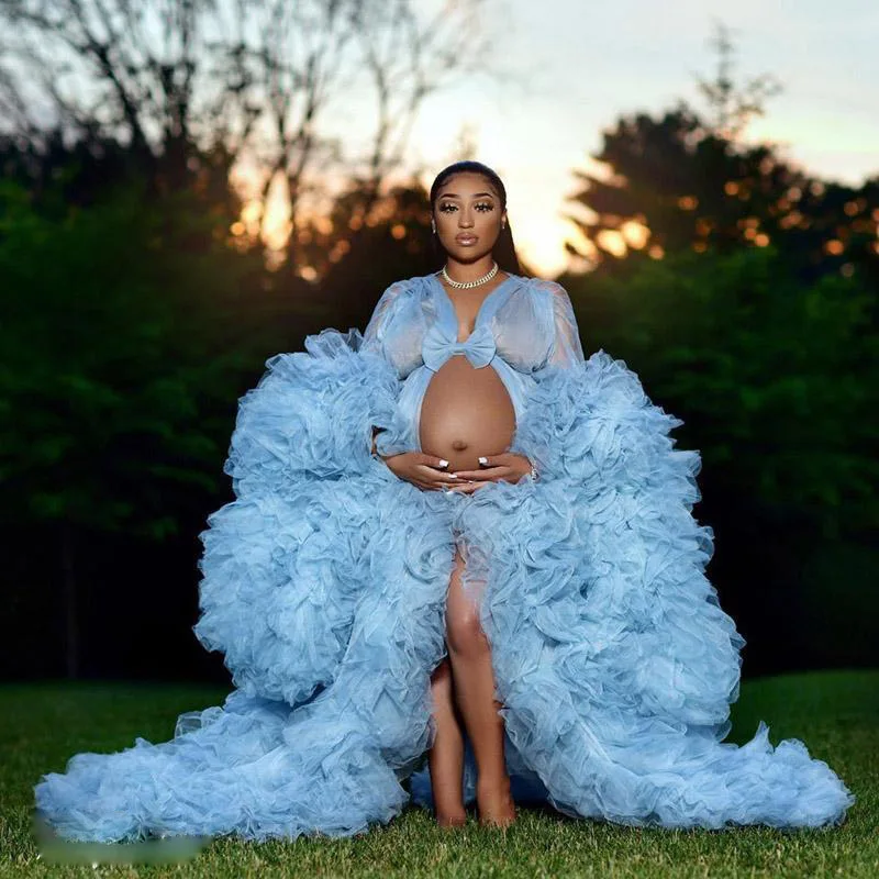Платья знаменитостей с длинным рукавом размера плюс Небесно-голубые женские вечерние платья для сна для беременных