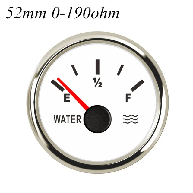 -Размер: диаметр 52 мм -Диапазон индикации: E - F -Рабочее напряжение: 9-32 В -Водонепроницаемость: IP67 -Материал: нержавеющая сталь -Сигнал: 0-190 Ом/240-33 Ом -Рабочая температура: -30 ~ + 75 -Температура хранения: -40 ~ + 85 -Цвет: белый и серебристый, белый и белый, черный и серебристый, черный