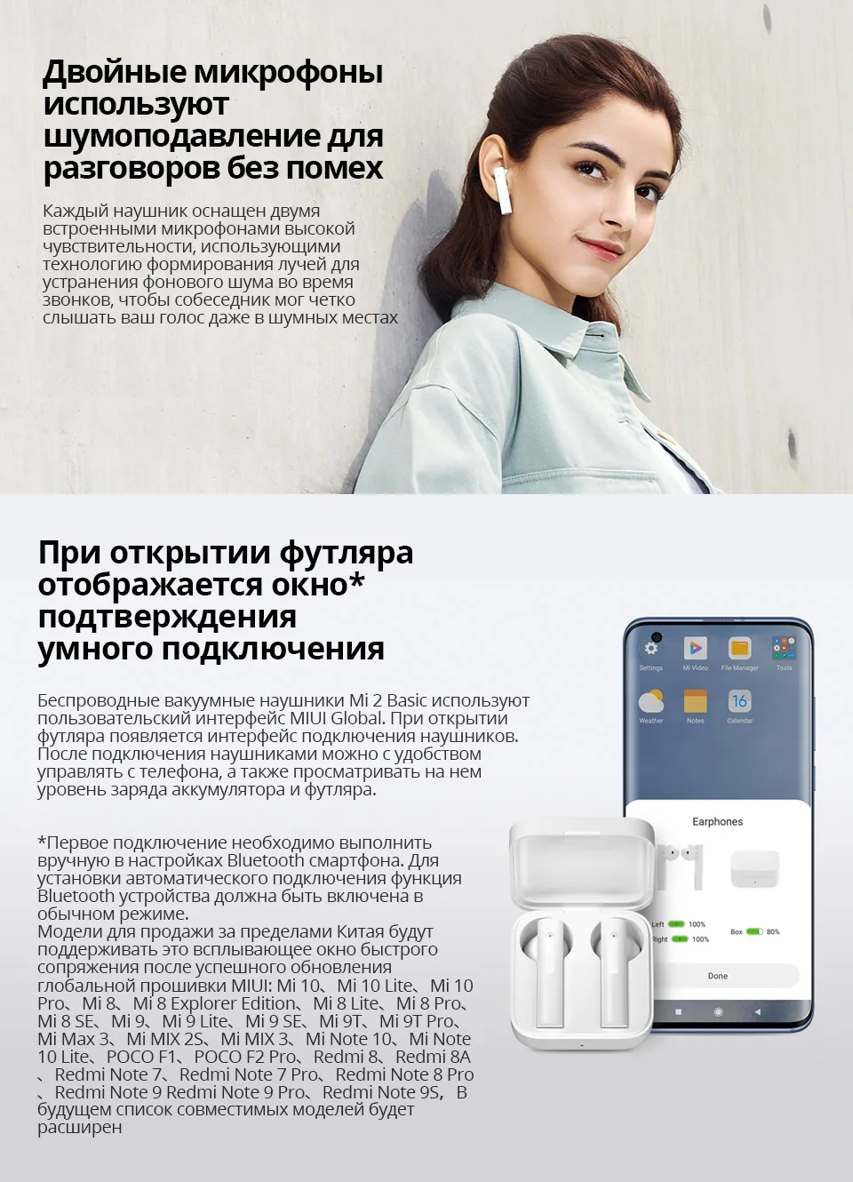 Xiaomi наушники Mi True Wireless Earphones 2 Basic TWS Наушники HD качество звука двойной микрофон беспроводные наушники MOLNIA