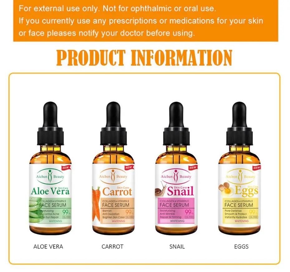 Сыворотка для лица Aichun, с алоэ, морковью, улиткой, яйца, увлажня...