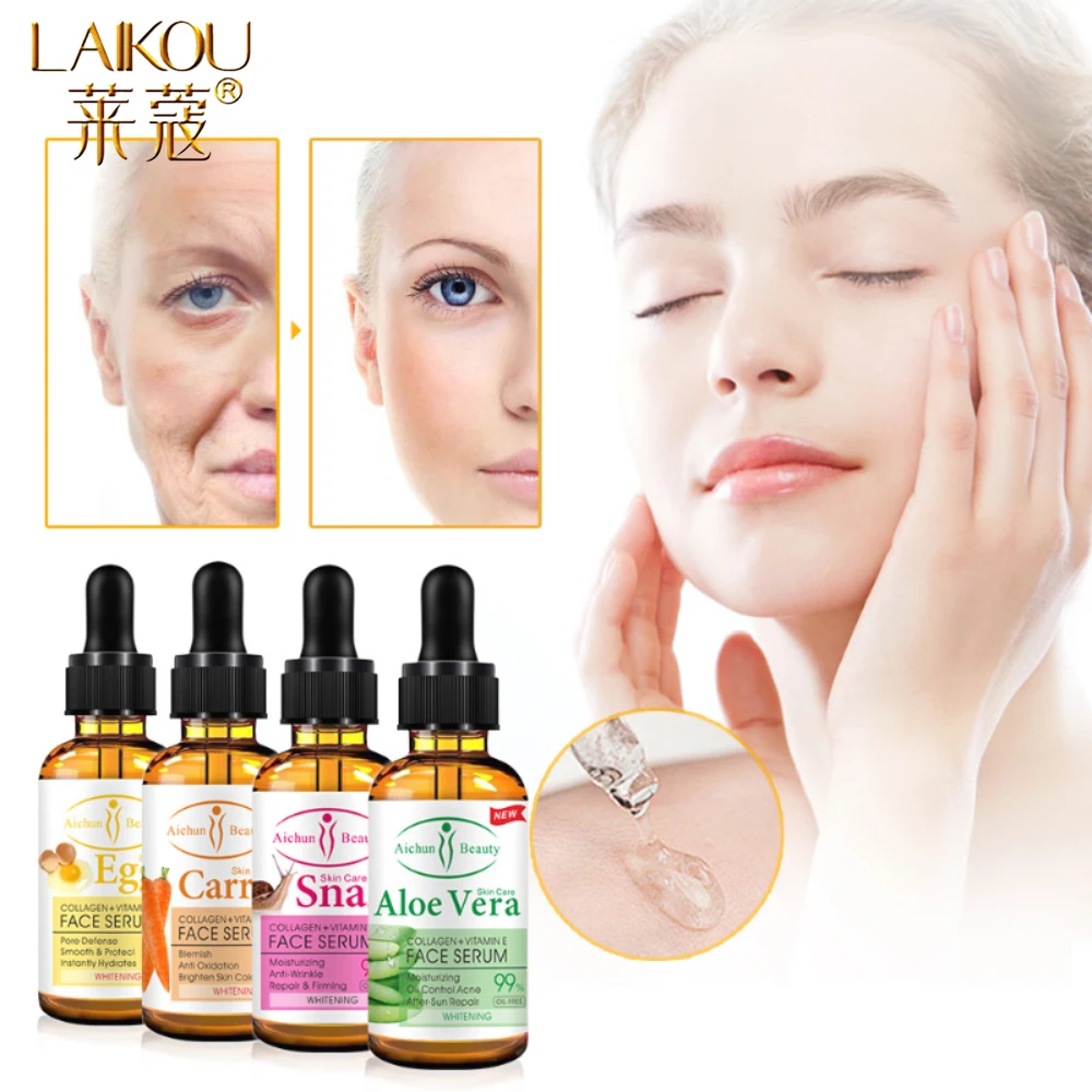 LAIKOU Сыворотка для лица с алоэ, увлажняет контроль жирности, отбеливание моркови, улитка, омолаживающие яйца, сужение пор, эссенция для лица, уход за кожей, 30 мл