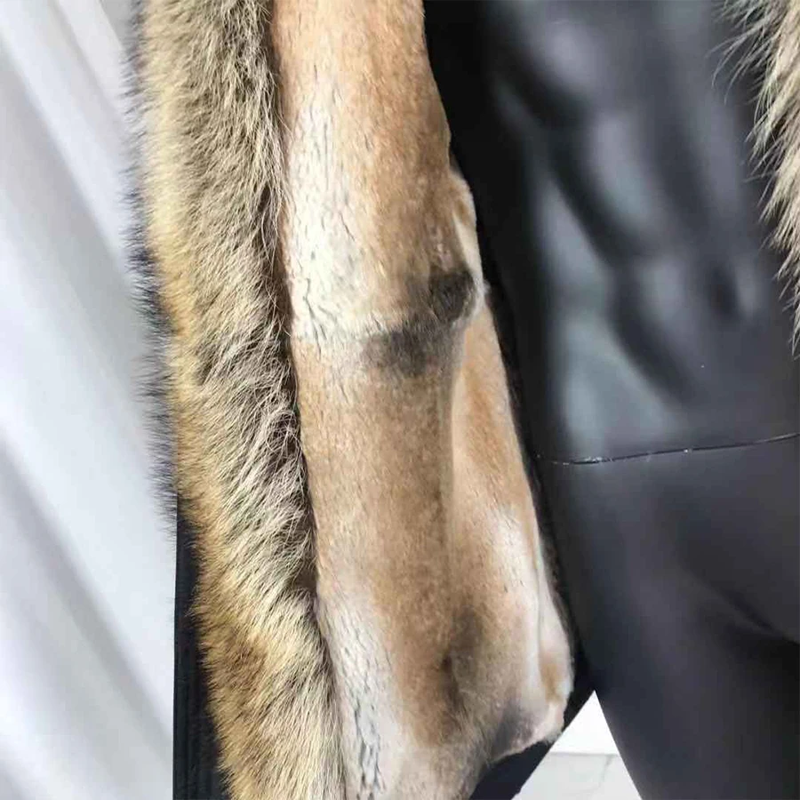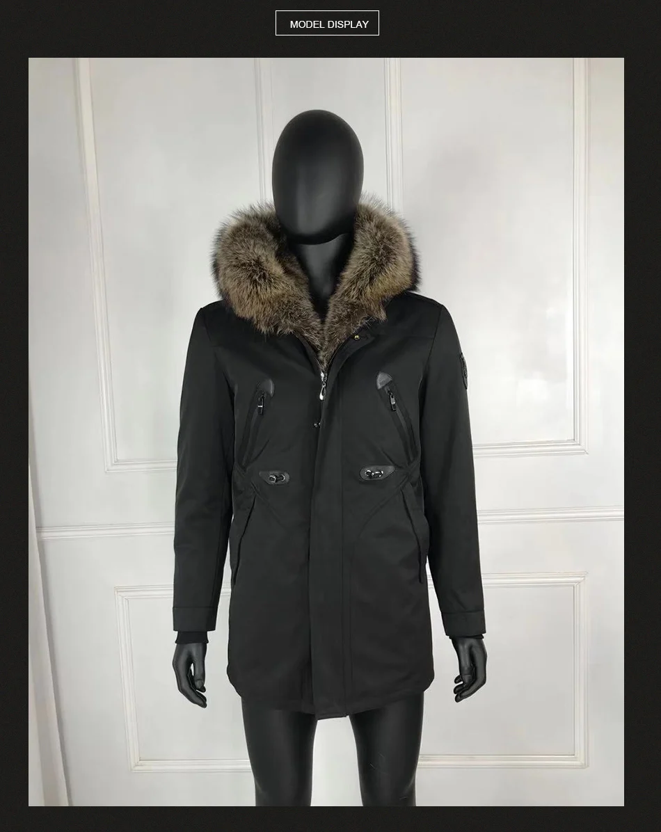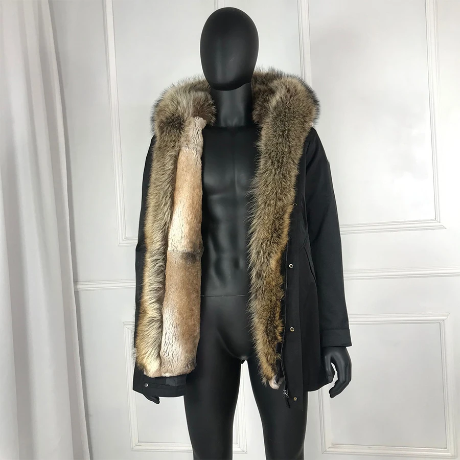 Мужское пальто, зимняя парка с 100% натуральным кроличьим мехом на подкладке, Воротник из меха енота, ветрозащитное пальто высокого качества