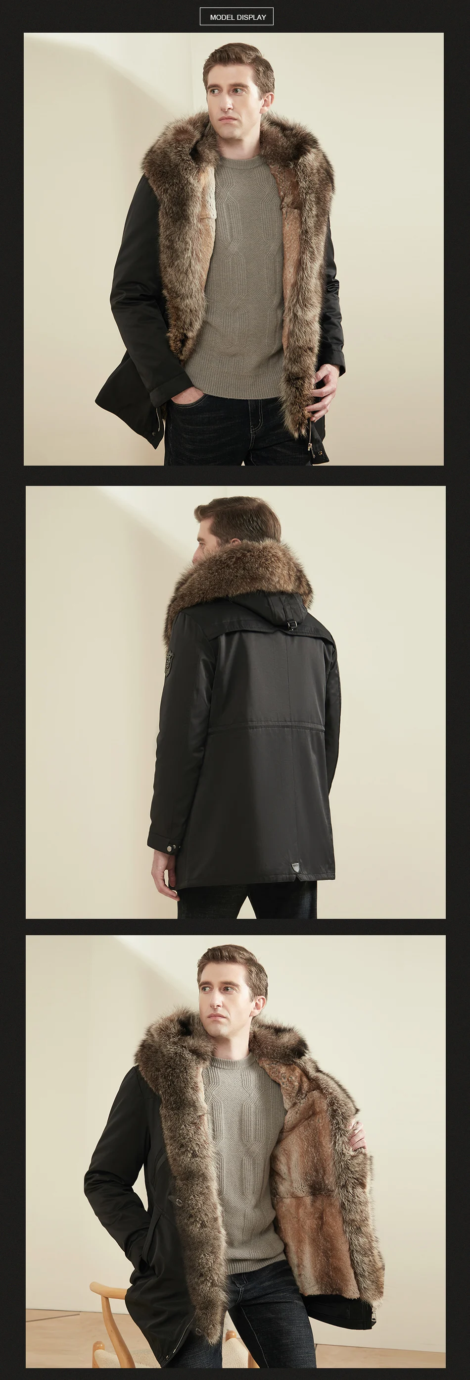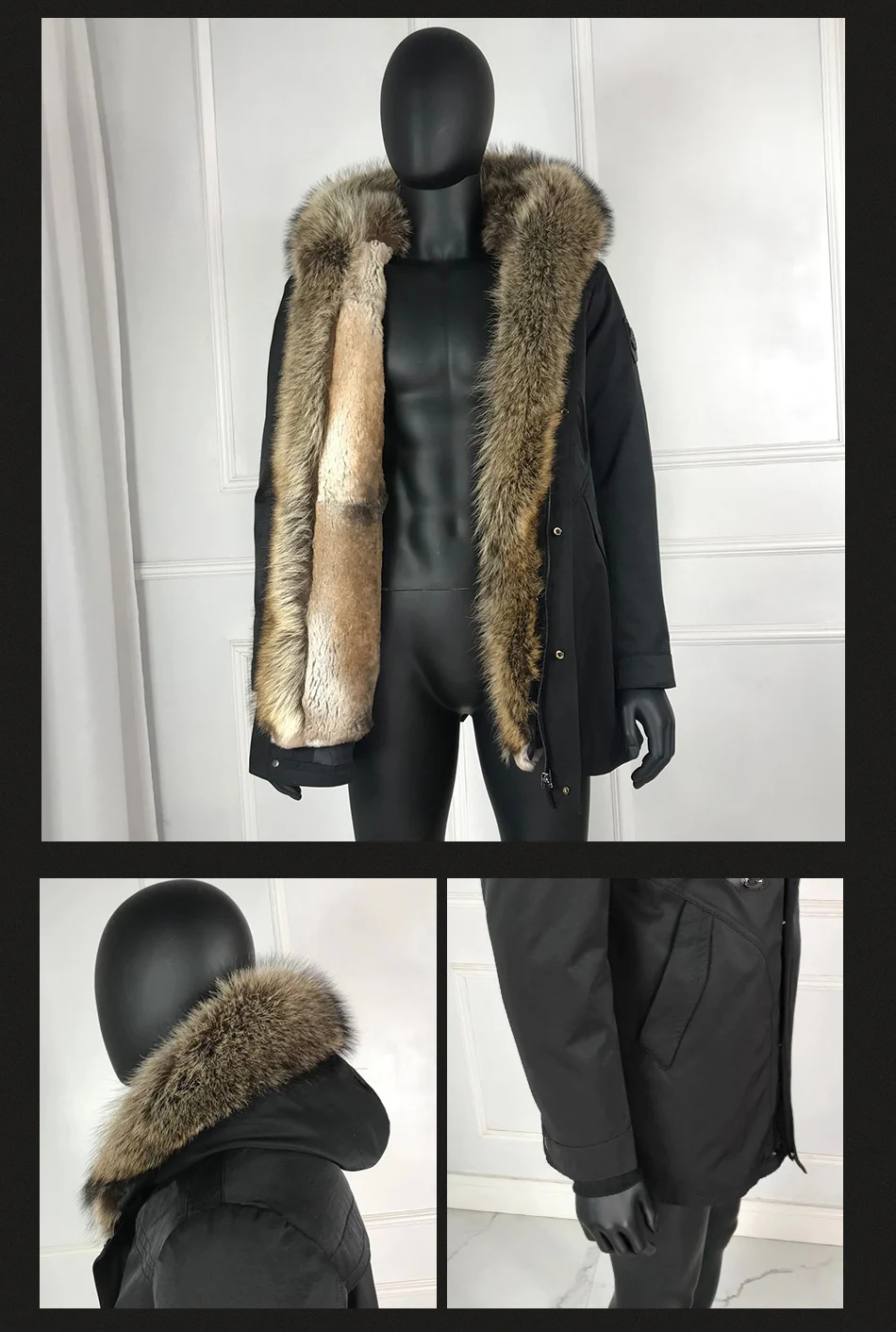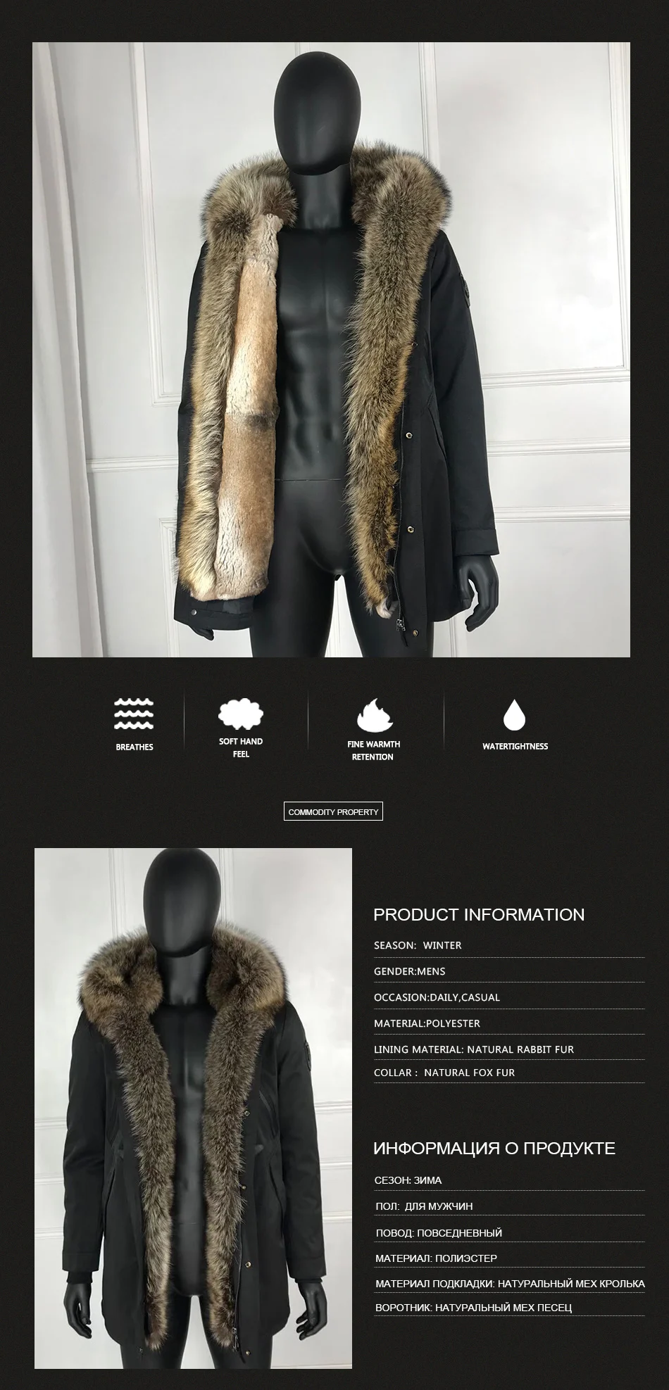 Мужское пальто, зимняя парка с 100% натуральным кроличьим мехом на подкладке, Воротник из меха енота, ветрозащитное пальто высокого качества