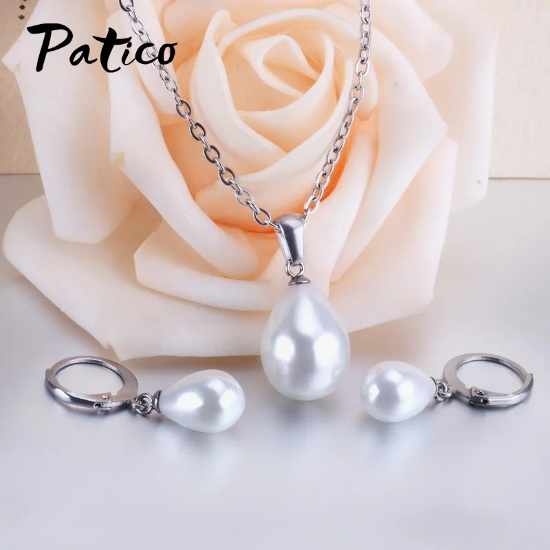 Роскошные ожерелья и подвески с жемчугом в форме капли воды, серьги-кольца для женщин, свадебные и Помолвочные Ювелирные наборы для невесты, подарок на вечеринку, оптовая продажа