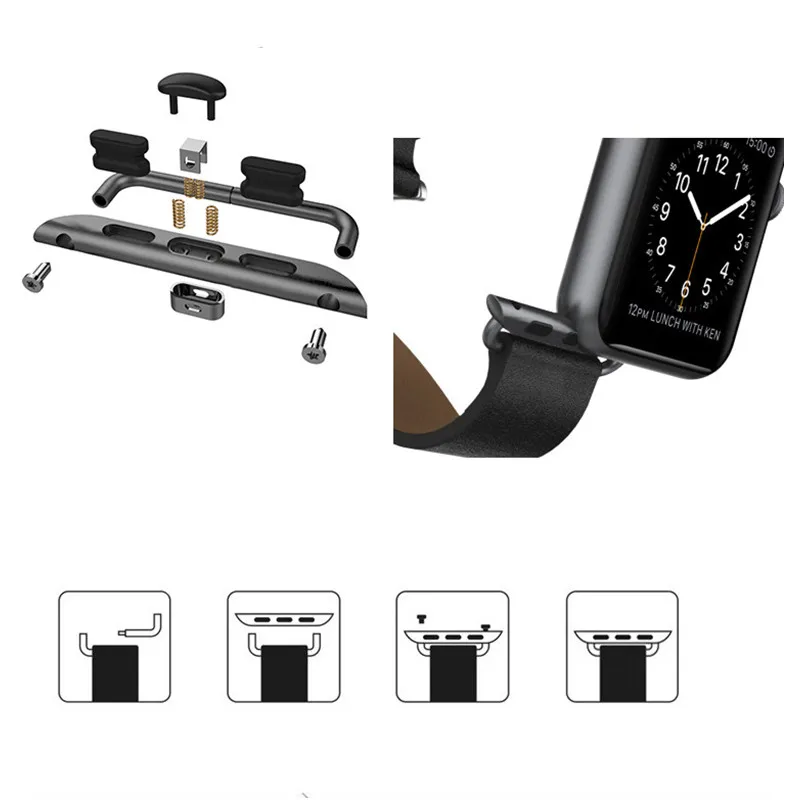 Разъем для Apple watch 4 5 44 мм 40 мм 42 мм 38 мм, аксессуары для iwatch series 5 4 3 2, адаптер из нержавеющей стали черного цвета с инструментом