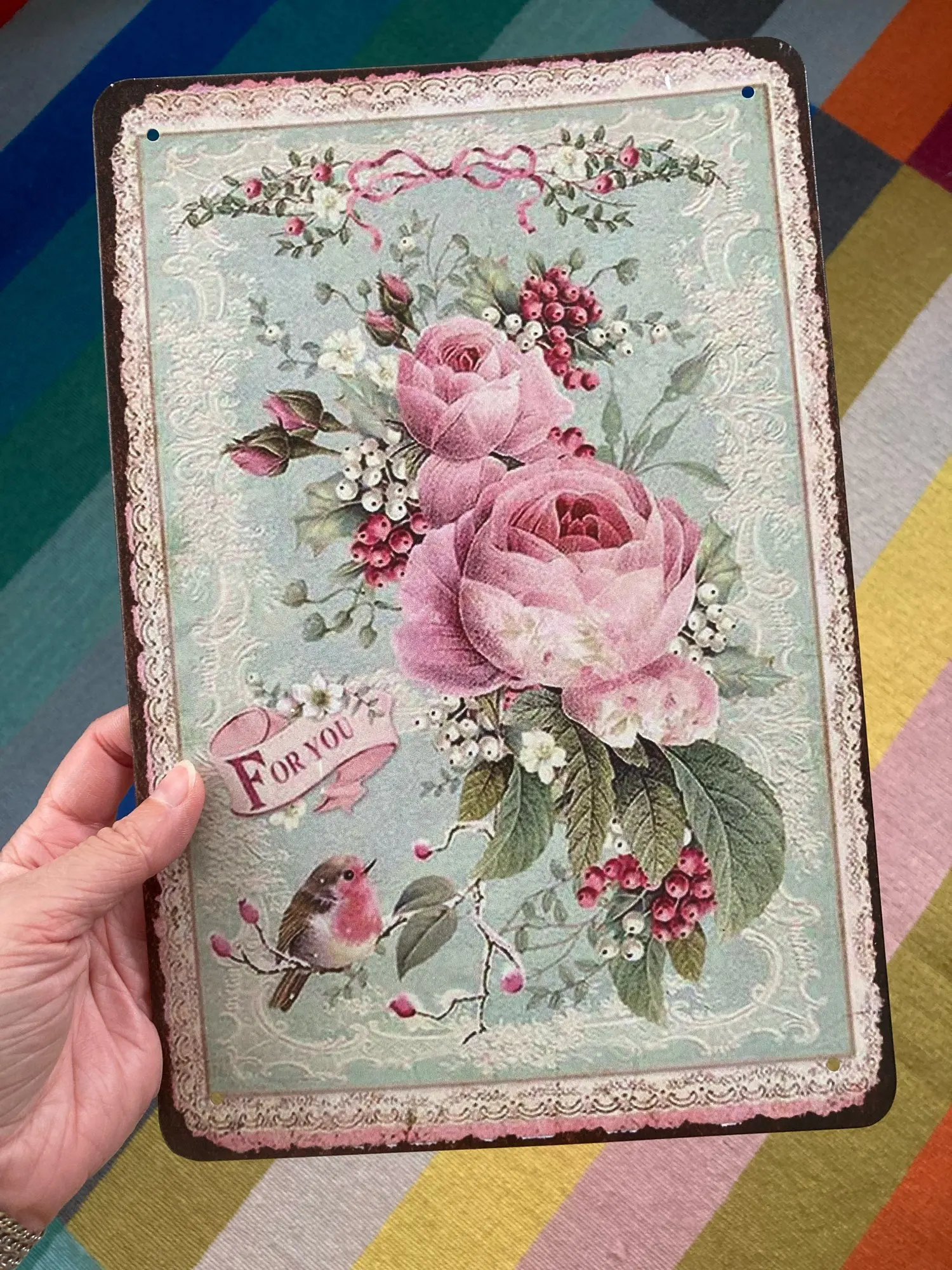Металлическая вывеска с лавандовой розой, винтажная тарелка, оловянный плакат в горшках для дома, сада, цветочного магазина, клуба, украшение