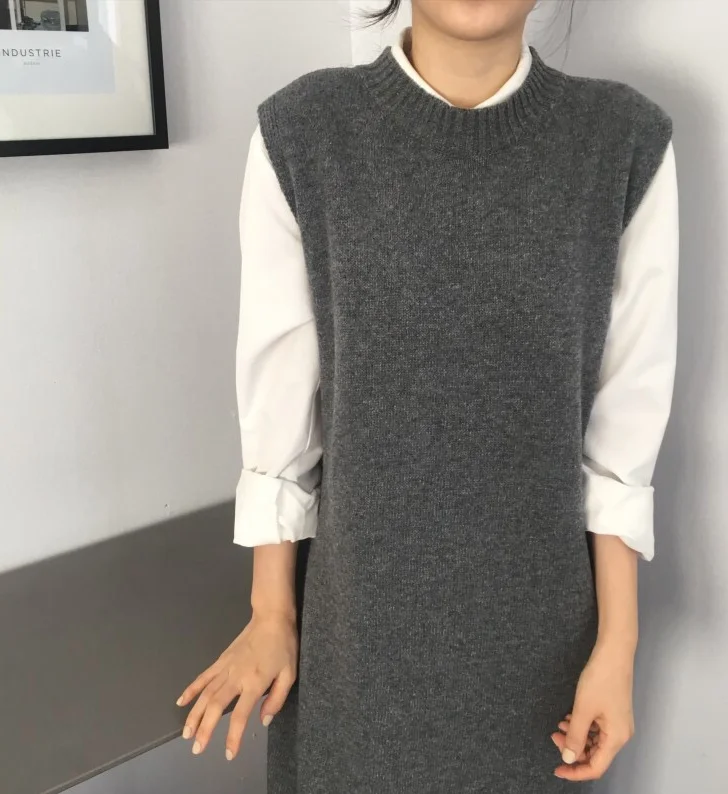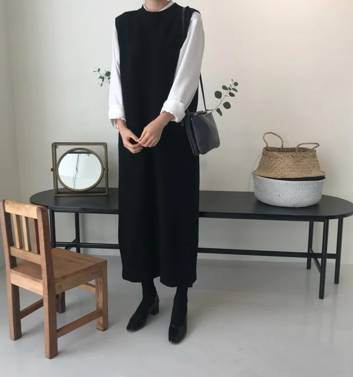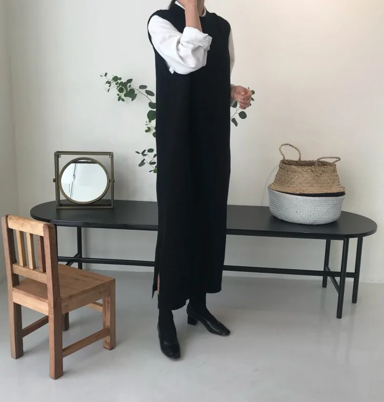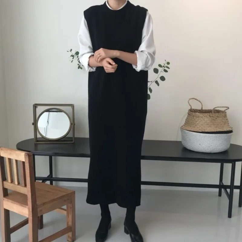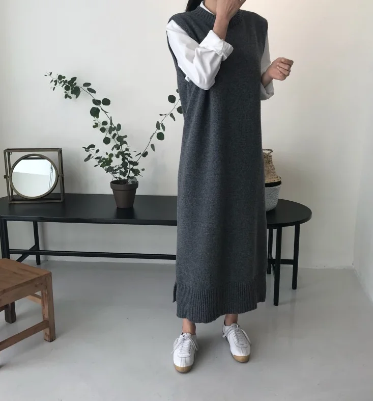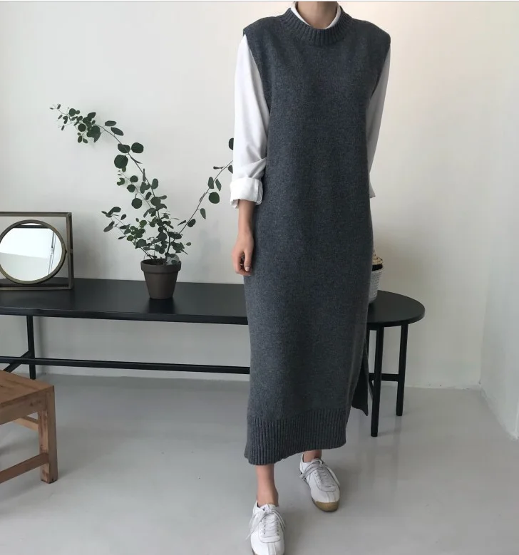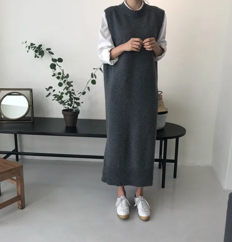 Женский вязаный сарафан, осенне-зимний длинный теплый сарафан свободного кроя, с круглым вырезом, без рукавов