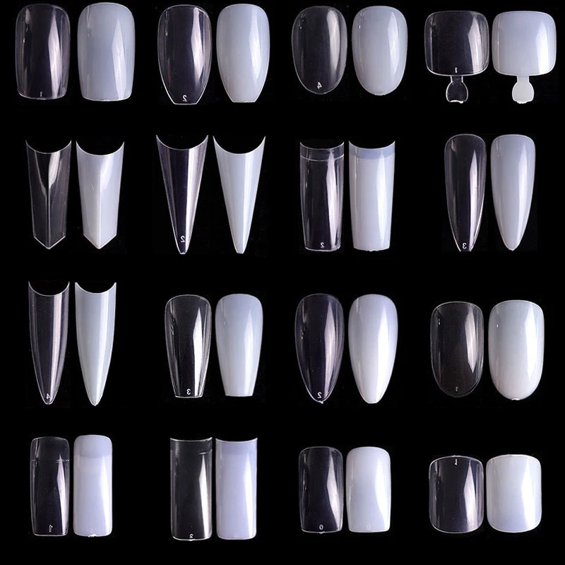 Накладные акриловые ногти 500 шт., натуральные прозрачные накладные ногти с полнымполным покрытием, французский острый гроб, накладные ногти балерины, УФ-гель, инструменты для маникюра