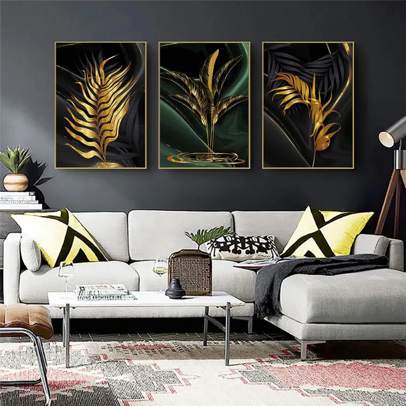 Прямая поставка, скандинавские зеленые современные золотые листья, Модная стильная Картина на холсте, художественный плакат, картина для стены, гостиной, домашний декор