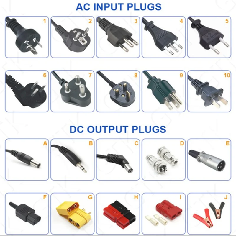 2. 5А зарядное устройство(Вилка стандарта ЕС, США или Великобритании)