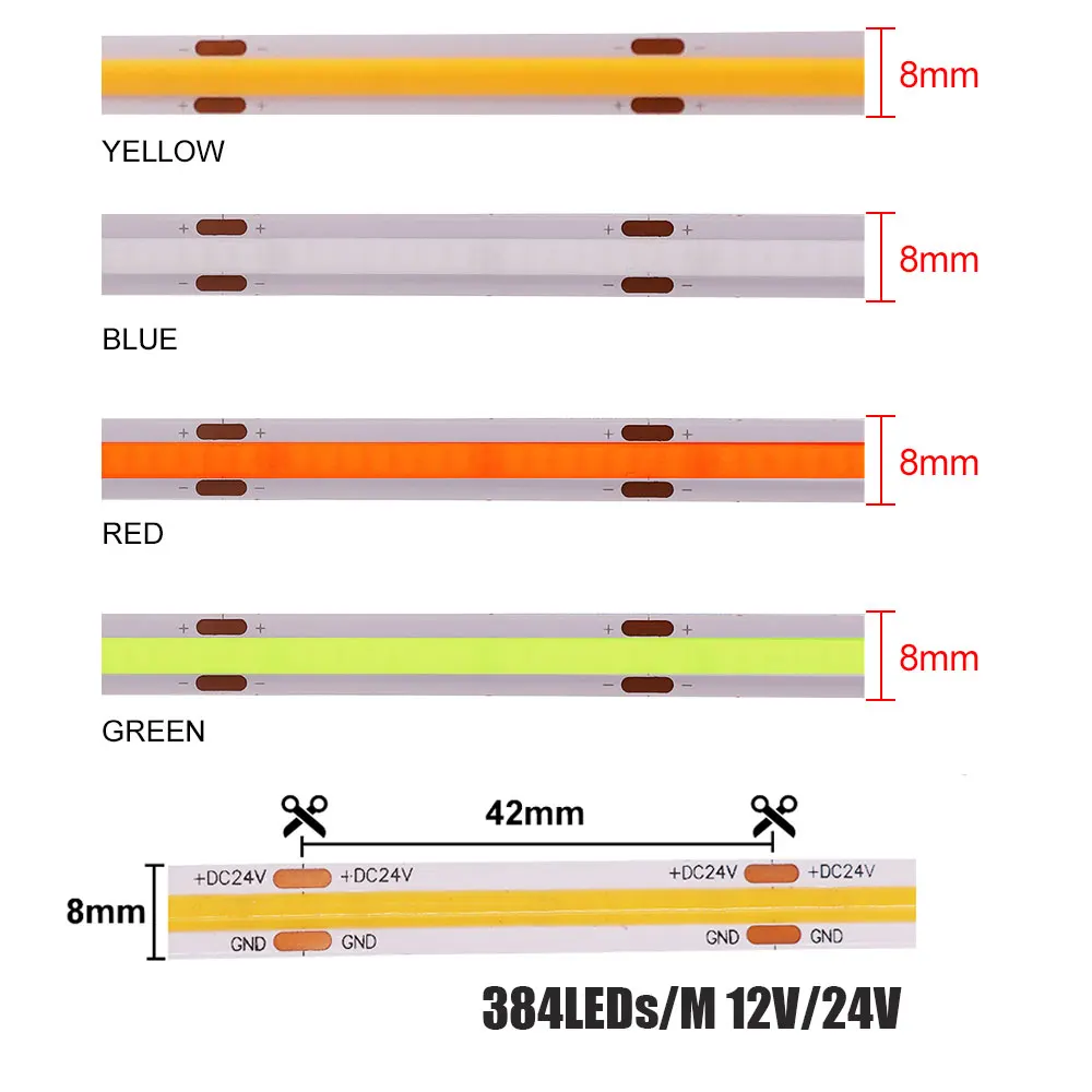 COB Светодиодные ленты светильник DC12V 24V высокой плотности гибкий COB светодиодный светильник полосы 384 светодиодов супер яркая светодиодная лента с регулируемой яркостью линейный лента