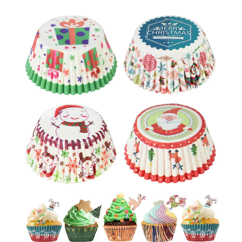 Формочки для кексов, бумажные, 100, Рождественский капкейк шт., рождественские торты украшения