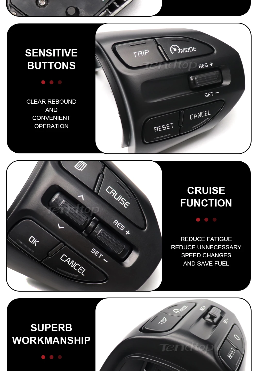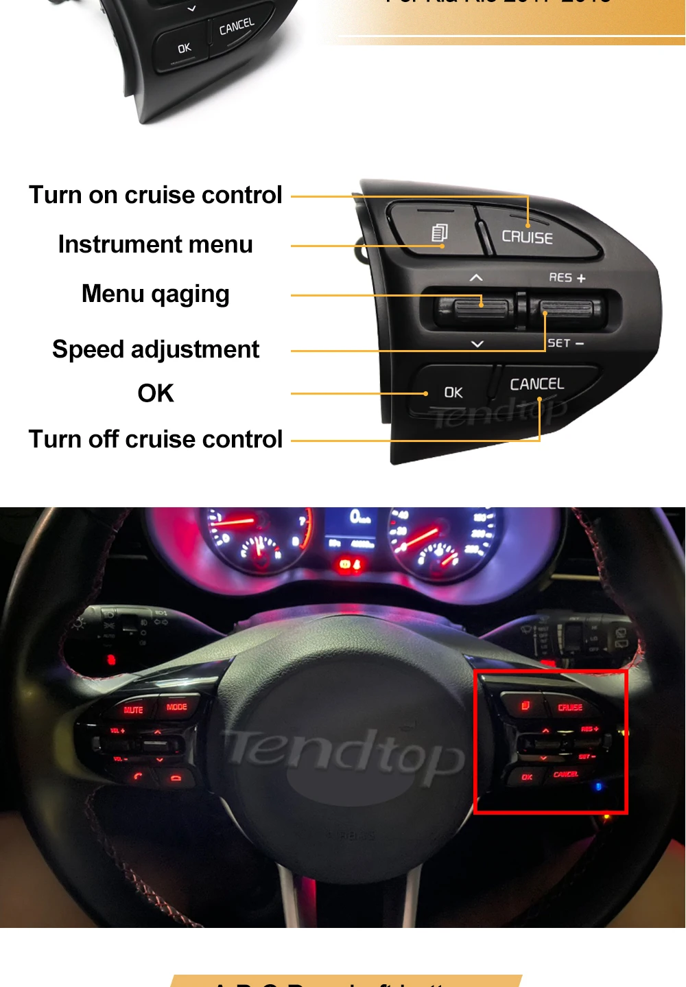 Применение:Модель A Для Rio 2017 2018 2019 год (нужен провод)Для Rio X-line 2017 2018 2019 2020 годДля Rio 5 2020 годДля Kia Stonic 2018 год (нужен Соединительный провод)Для Rio 4 2017 годМодель BДля Rio 2018 2019 2020 2021 годДля Rio 4 2017 2018 2019 2020 годДля Rio December 2018Для Rio X-line 2018 2019 2020 2021 годДля утреннего 2018 годаДля Moring (Picanto)2020 годМодель CДля Rio 2018 2019 годДля Rio 4 2019 годДля Rio X-line 2017 2018 2019 годДля утреннего 2018 года Moring (Picanto)2020 годаДля Rio ikslain, 2019Для Rio August 2018Для Rio luxe red line 2018Для автомобиля Rio red line October 2018Модель DДля Kia Rio 2017-2018Сменный провод (красный провод в этом списке): -Для провода, который был сломан в оригинальной системе рулевого управления,E. g. Провод внутри часового механизма подушки безопасности.-Дополнительный провод, который необходим для провода, которого нет в оригинальной системе рулевого колесаСпецификация:-Для K2 & Rio X Line (2017-2021)-Тип: рулевой RH дистанционный Круизный переключатель-Материал: высококачественный АБС-пластик-Цвет: черный-Модель: Левая кнопка, модель A,B,C,D-Тип установки: прямая замена-Красная подсветка-Простота установки и долговечность использования.-Отличное качество и отличная посадка.-Правильный разъем без резки или сращивания.-Строгие стандарты контроля качества для сборки и тестирования.-Номер детали производителя: 96720-H8020 96720-G6010(Год и модель автомобиля только для справки, вы можете сравнить размер и Шап рулевого колеса боты, если не можете подтвердить, пожалуйста, свяжитесь с нами, прежде чем купить его)Важное Примечание перед покупкой:1. Правая сторона круизной функции нужна DVD GPS плеер для поддержки. Все функции кнопки переходят к настройке на dvd-плеере.2. Мы гарантируем высокое качество и проверяем, что все хорошо работают перед отправкой. Вы обнаружите, что это лучшее предложение, если вы покупаете. Мы предоставим Вам лучший сервис.3. Единственный способ быть на 100% уверенным, что деталь подойдет вашему автомобилю-это проверить ваш оригинальный номер детали, вы также можете позвонить своему местному дилеру или написать мне о помощи.4. Мы поддерживаем оптовиков. Оптовики имеют большие скидки