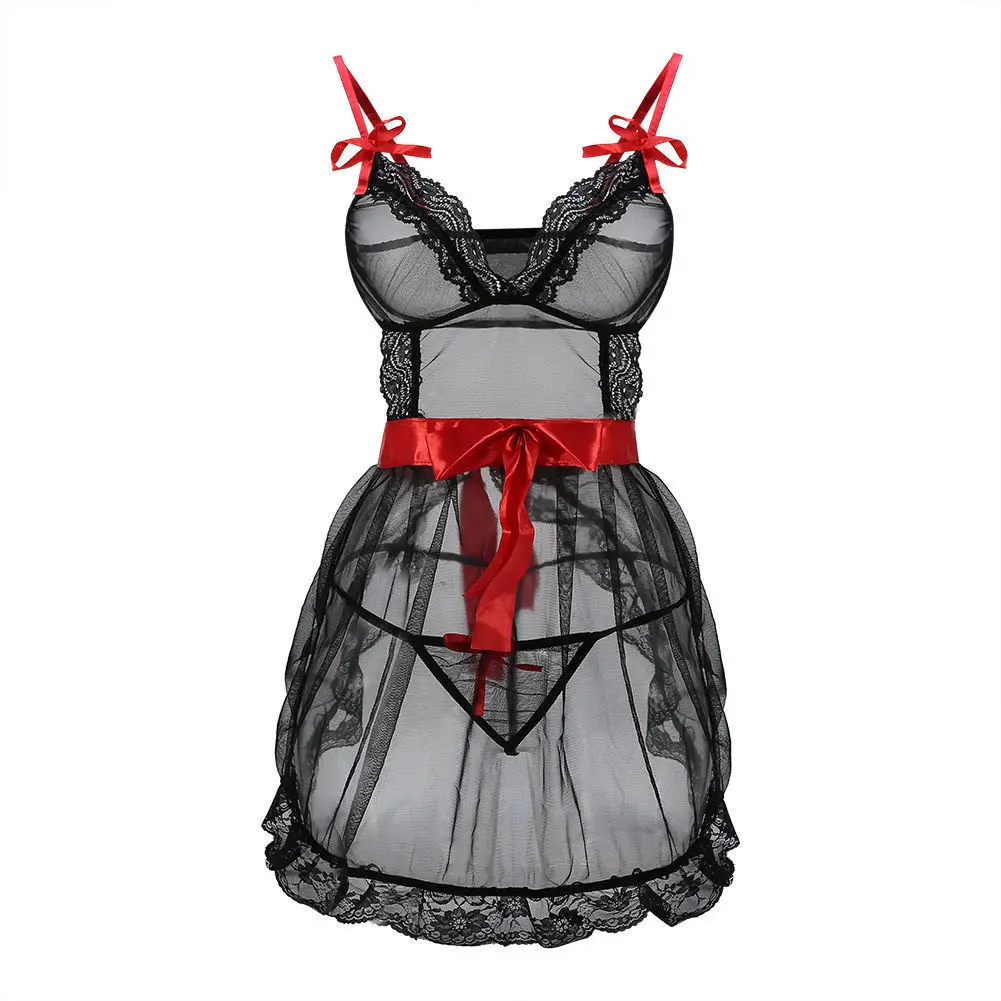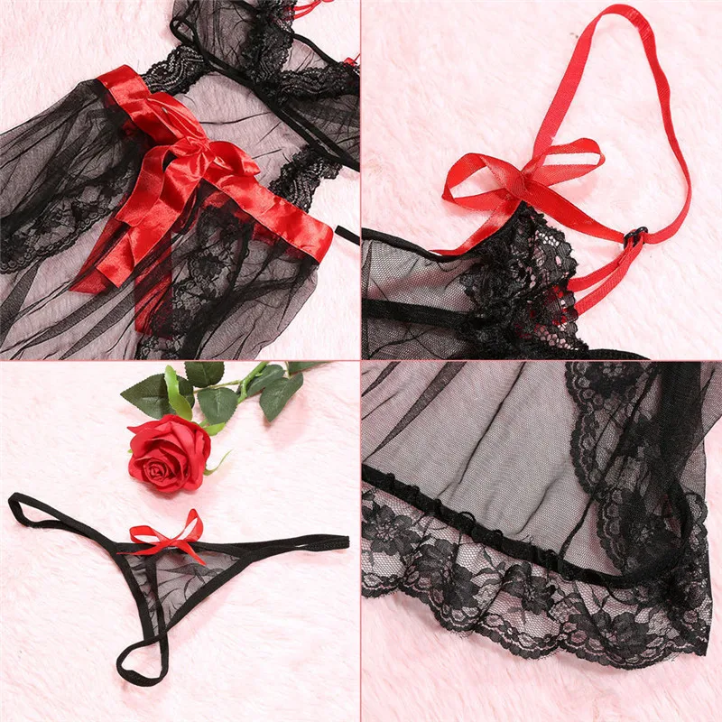Женское сексуальное нижнее белье, кружевная ночная рубашка с бантом