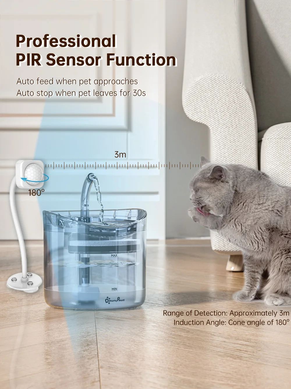 Фонтанчик классный, понравился моему котенку, теперь больше воды пьет их привлекает бульканье, струю воды неслышно, обязательно покупайте с датчиком движения, время действия 30 секунд, в подарок брелок, заказывал доставку с России, пришло почтой России за 4 дня, покупал за 1600, рекомендую к покупке, теперь не надо переживать что ваш питомец останется без воды, пока вы на работе, можно уехать на пару дней, жду автоматическую кормушку, что и вам желаю, это лучший водопад по цене и качеству, не надо покупать фильтр за 600 рублей в месяц как у Xiaomi, можно самому сделать, дёшево и качественно, можете не рассматривать другие модели, останавливайтесь на этой модели!!!