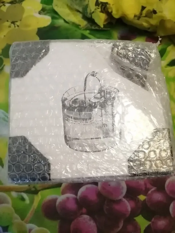 Посылка пришла меньше чем за неделю. Упакована хорошо, коробка не повреждена. Собирается легко, есть инструкция на англ. Моторчик работает тихо, радиус датчика движения 2-3 метра. Есть запасные фильтры, силиконовый коврик, ёршик и губка для чистки фонтана. Кошкам нравится.