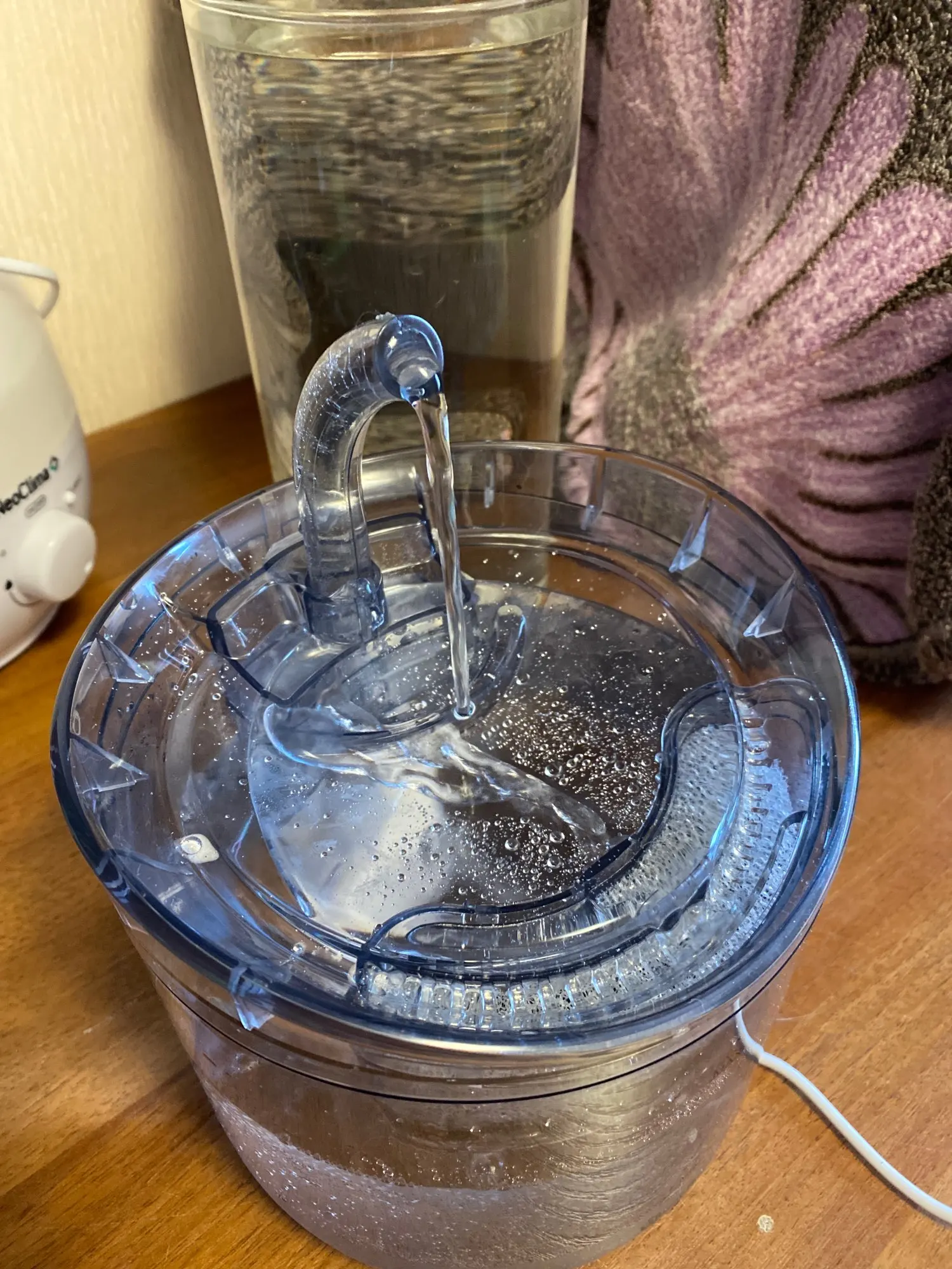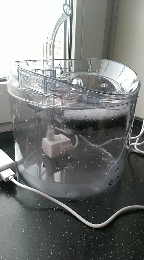 фонтан хороший , моя кошка оценила сразу , очень любит играть и пить воду из крана, поэтому фонтан она оценила) насос совсем тихий , слышно только журчание воды, но если убрать верхнюю трубку, то и этого слышно не будет) скорость подачи воды регулируется