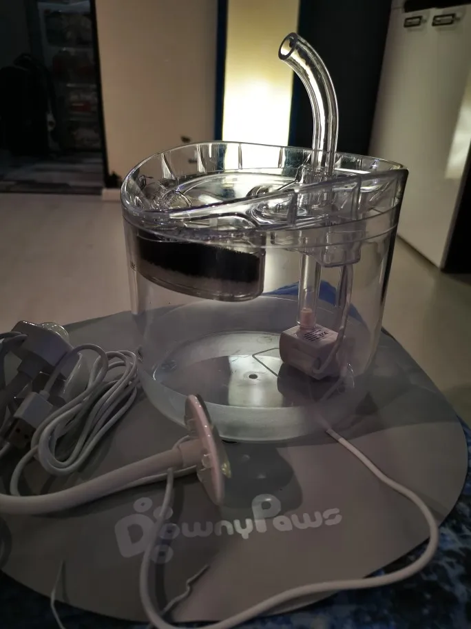 Классная , не большая поилка. кошкам и собаке понравилось. Осень тихая , звука от помпы вообще не слышно. Не понравилось то что в месте соединения помпы и трубочки резиновое уплотнение не по размеру , не плотно вставляется трубка от помпы в прозрачный трубопровод. Датчик движения пашет .в темное время суток не хватает подсветки самой поилки, могли бы в помпу светодиод поставить, было бы ваще круто.