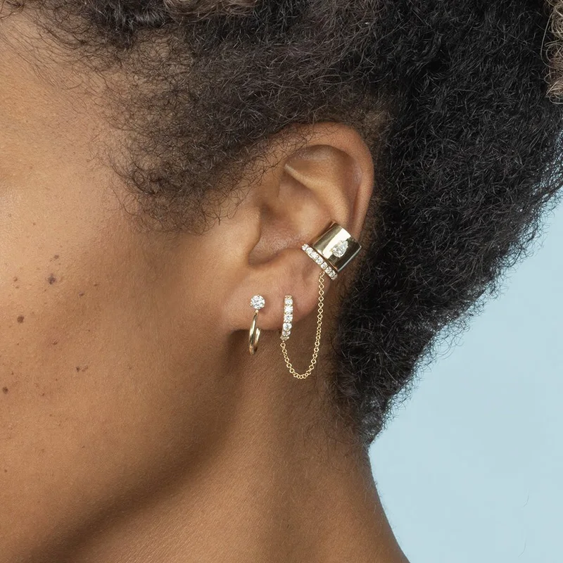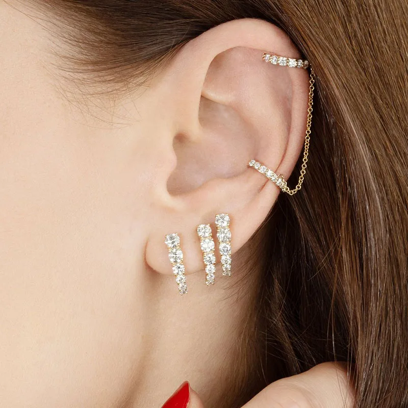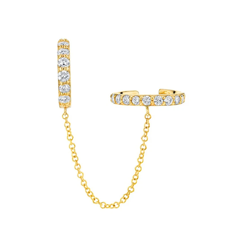 GS 925 пробы Серебряная Ушная манжета Клип цепи серьги для женщин Ц...