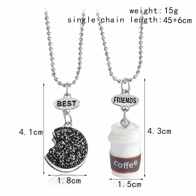 2 шт., ожерелье с кулоном в виде чашки кофе, печенья для пары, цепочка дружбы, ожерелье с подвеской, детские ювелирные изделия для женщин