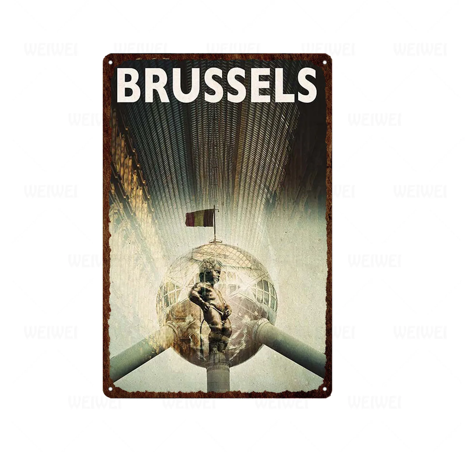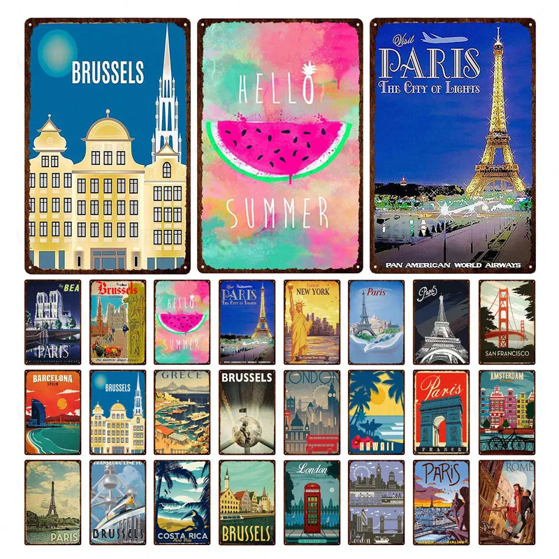 Летние дорожные здания в Брюсселе, металлические знаки, плакат в Париже, римском стиле, настенный бар, ресторан, домашний магазин, винтажный декор, 30x20 см