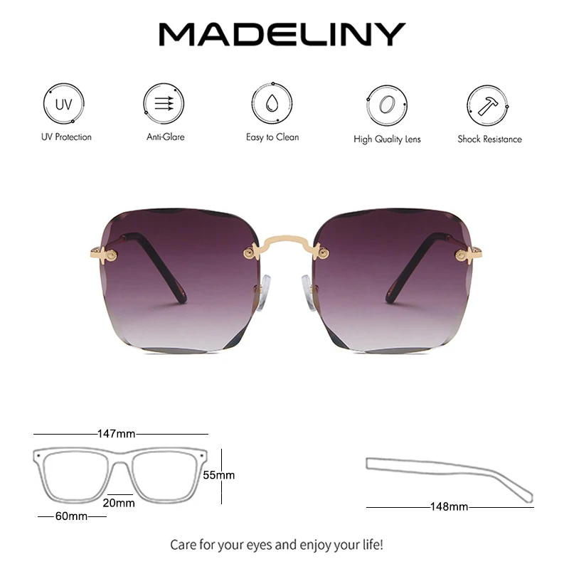 Женские и мужские солнечные очки без оправы MADELINY, прямоугольные...