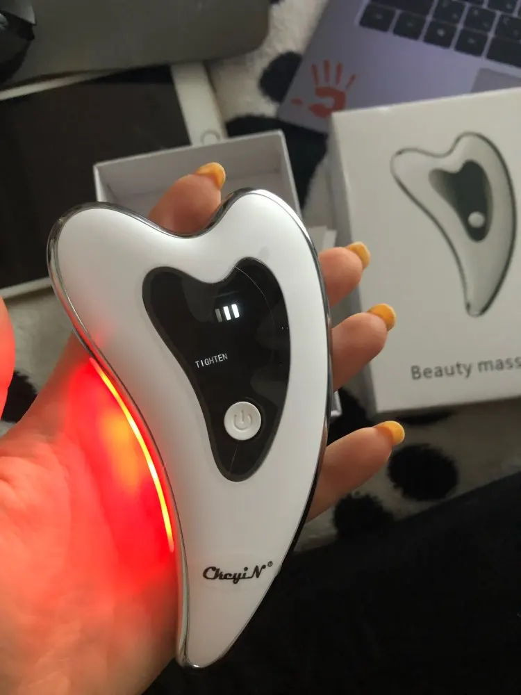 Массажер для лица, шеи, лифтинга, похудения, гуаша, Электрический Вибрационный подогрев, зарядка по USB, омоложение кожи, массажер для лица и тела 53