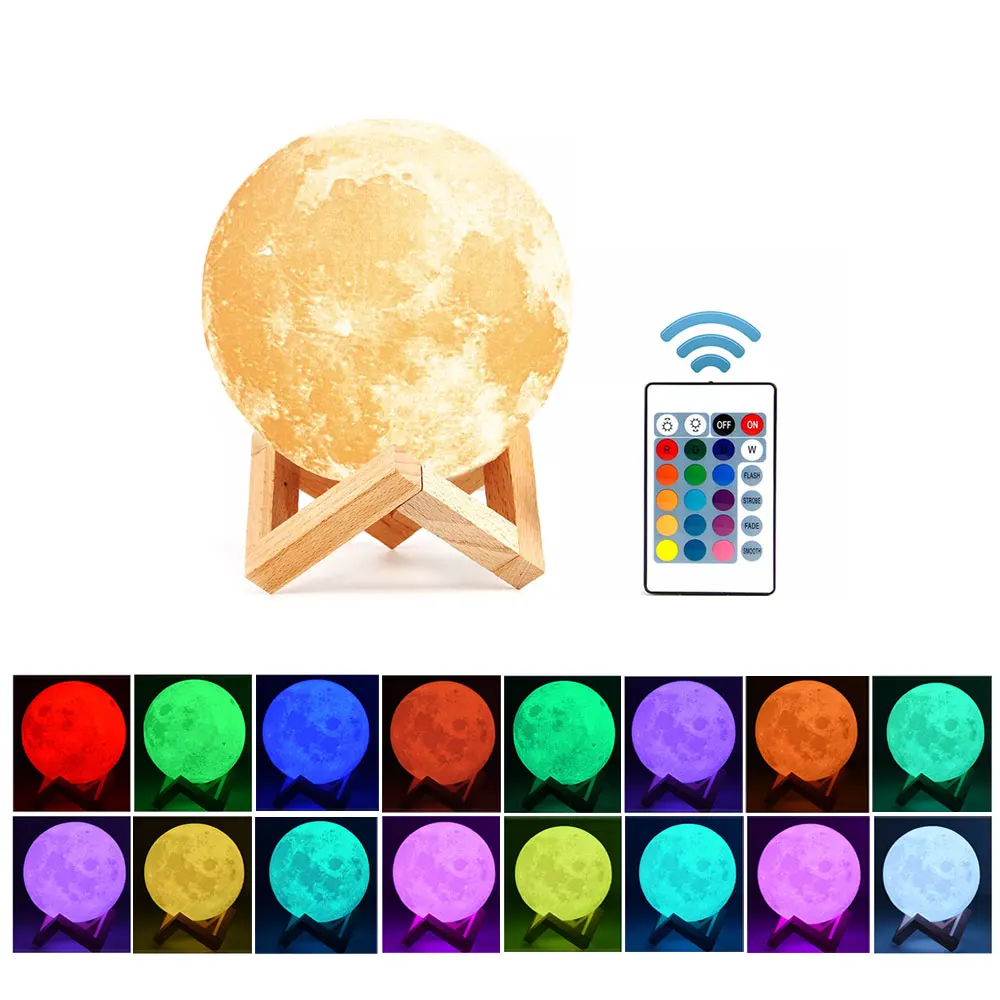 Перезаряжаемая лампа в виде Луны 16 цветов, деревянная подставка с ...