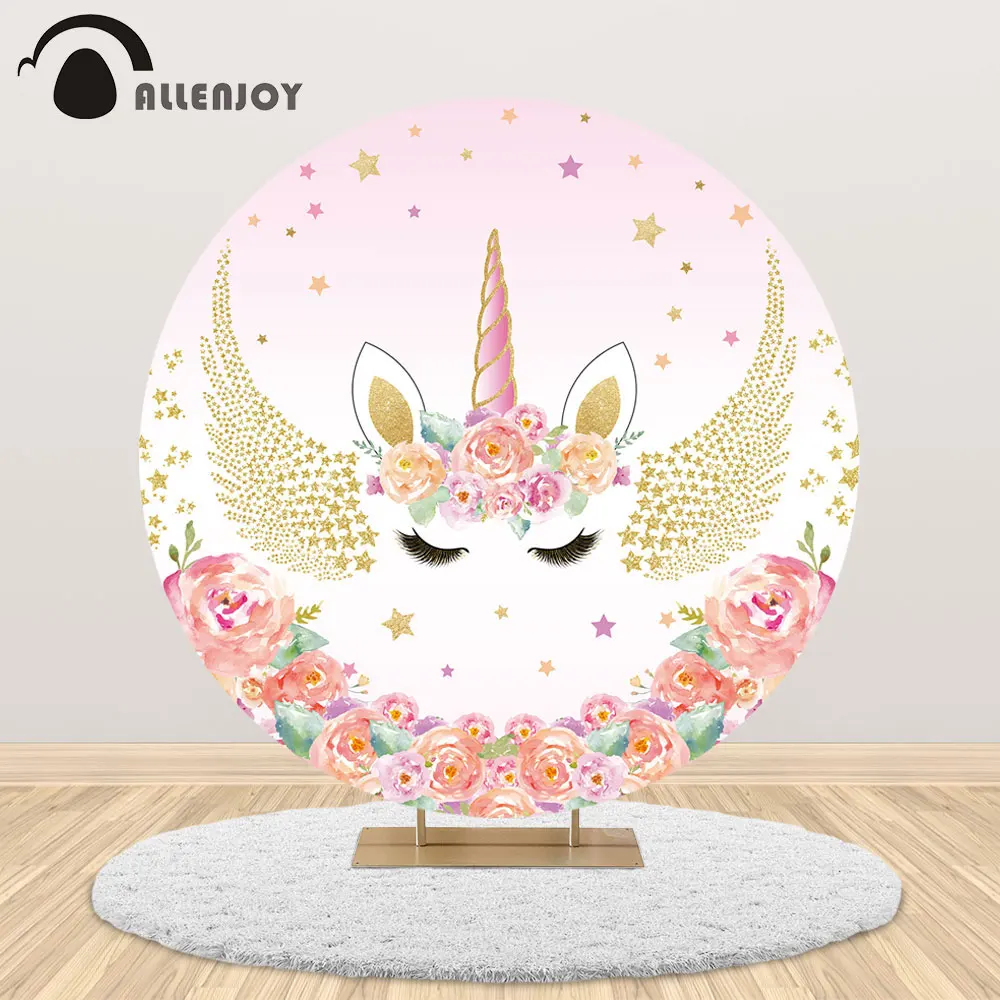 Круглый фон Allenjoy с изображением единорога звезд цветов для дня ...