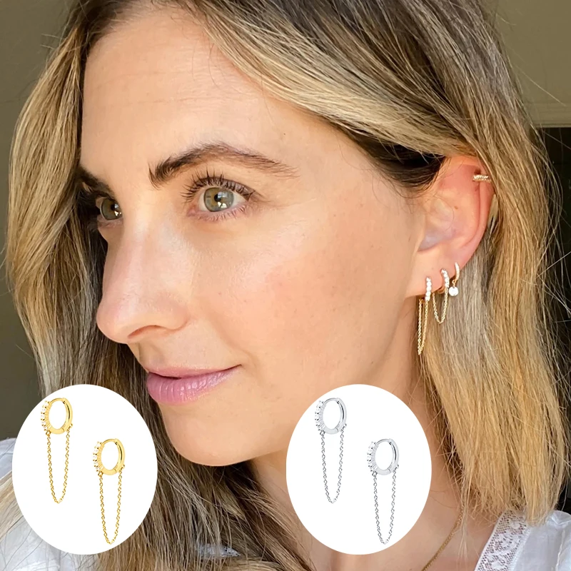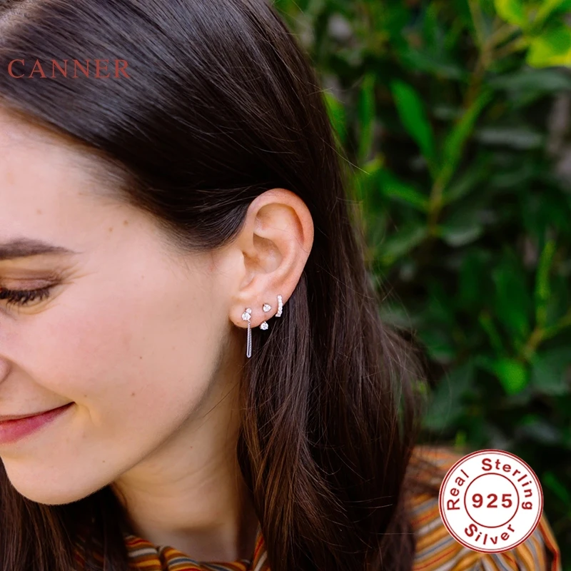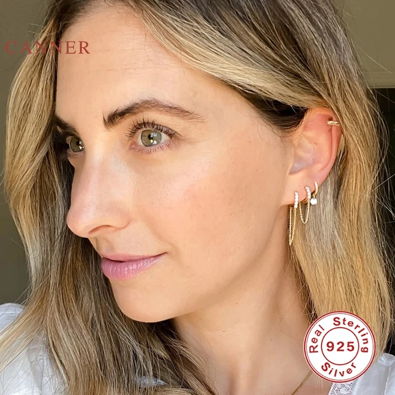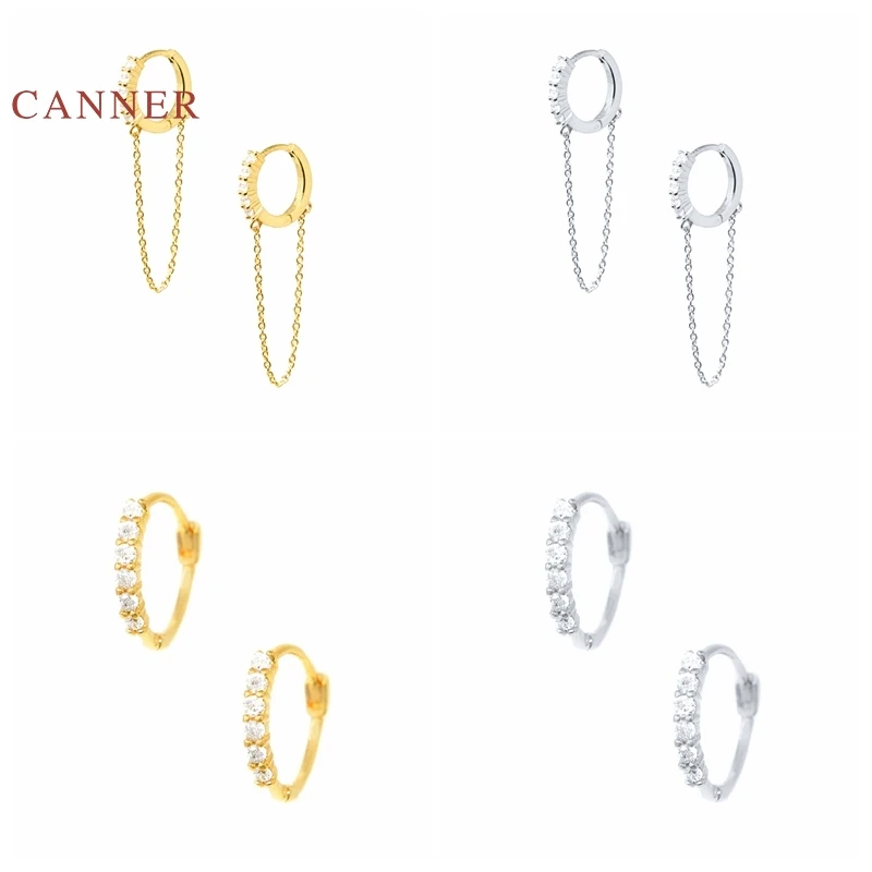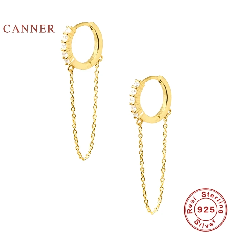Женские Классические круглые серьги-цепочки CANNER из настоящего серебра 925 пробы, серьги-обручи с цирконием и бриллиантами