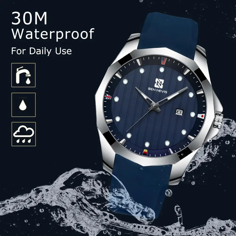 Мужские кварцевые часы с силиконовым ремешком, на силиконовом ремешке
