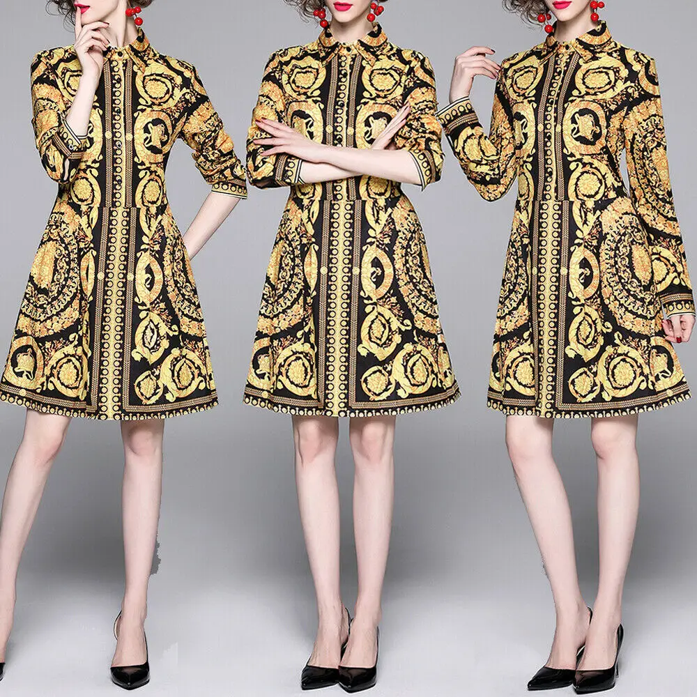 Женское винтажное платье-рубашка с принтом, модное дамское свободно...