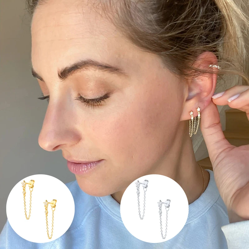 Серьги женские из серебра 925 пробы, С-образной восьмиугольной звездой