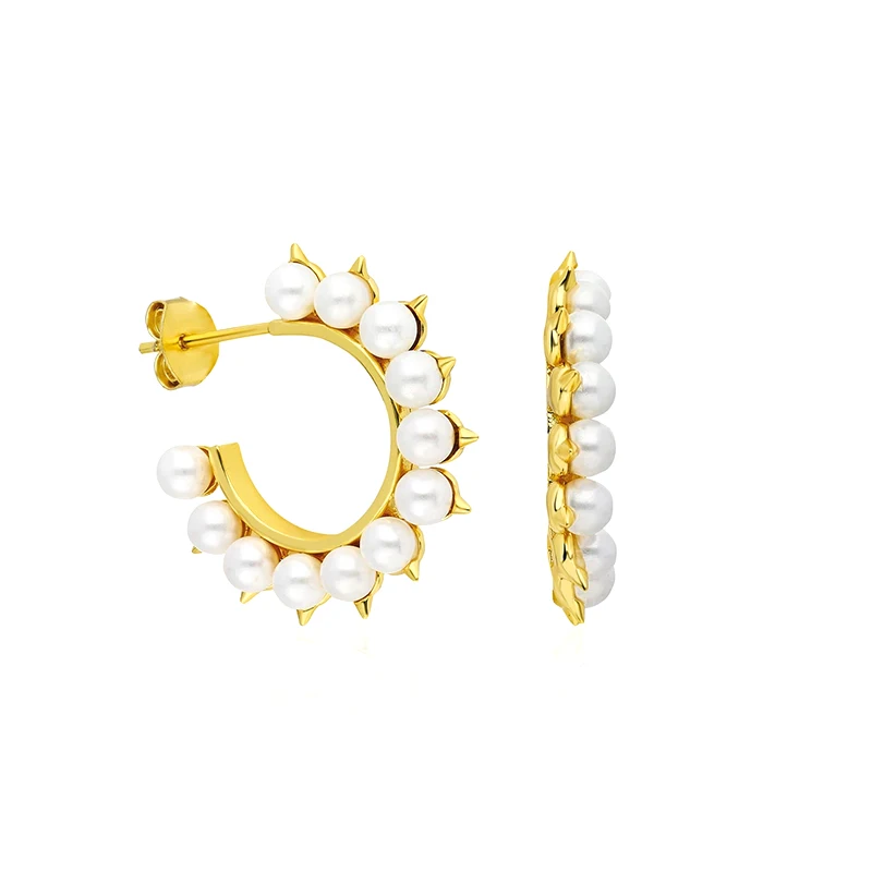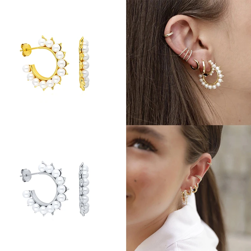Серьги-кольца женские из серебра 925 пробы с жемчугом #9,2