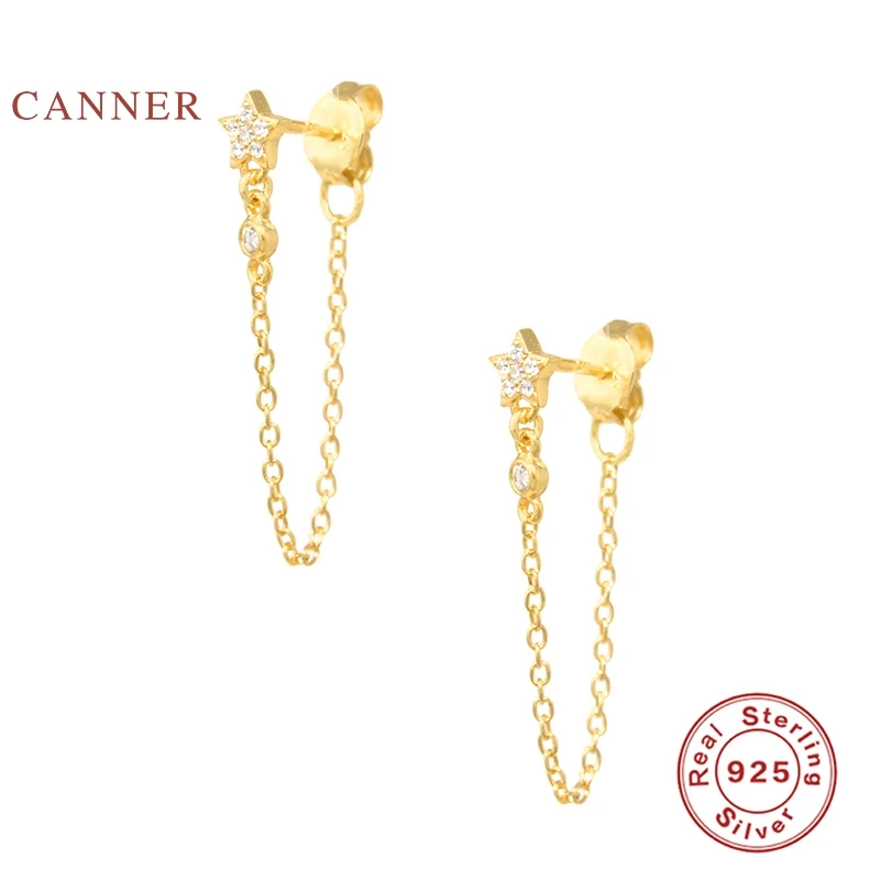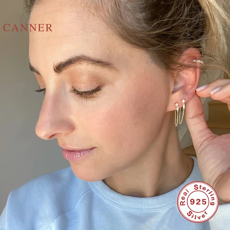 Женские серьги-колечки CANNER, Винтажные серьги из стерлингового серебра 925 пробы с кисточками в виде маленькой звезды, ювелирные изделия из циркона