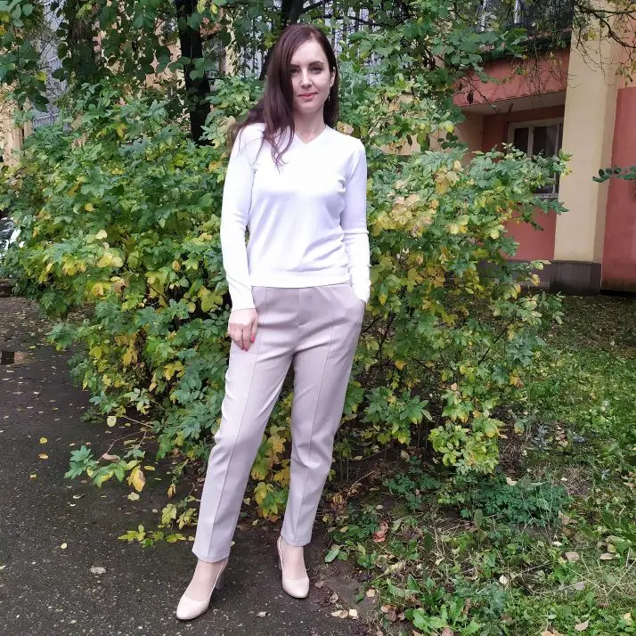 Брючки очень понравились , универсальная модель и села хорошо на фигуре. Цвет у меня на фото получился светлее, чем по факту. Только на детальных фото он более похож. Но на промофото передан верно. На параметры 85-75-98 был выбран размер XXL. Сели по фигуре свободно, я так и хотела. Как смотрятся меня вполне устраивает. Выгуливала их уже не раз и с уверенностью могу сказать, что модель в носке комфортная и удобная. Нигде ничего не давит и не жмет. На рост 172 см длина немного не хватает длины. Материал мне очень понравился. Очень толстый, плотный, мягкий и на ощупь приятный, немного тянется, отлично гладится и почти не мнется. Посадка у брюк средняя, внизу заужены. Верх на резинке. Она толстая, не очень плотная, тянется хорошо и следов на теле не оставляет. Мне по ощущениям даже не хватает плотности, т.к. при движениях немного сползают вниз. Нужно периодически поправлять. Никаких пуговку и модниц здесь нет. Стрелки прошиты. Впереди 2 рабочих кармана, сзади обманки.