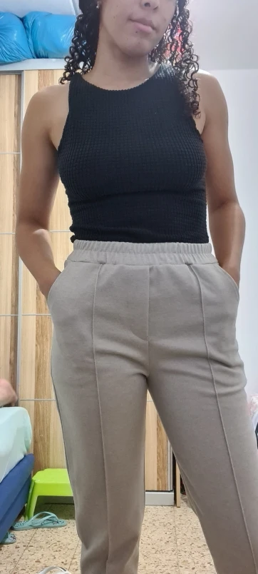 Штанишки плотные, можно и в офис носить, не выглядят как спортивка. На рост 170 взяла XL, чтобы были подлиннее. На рост выше будут коротки . XL и L между собой не сильно отличаются, брала двое брюк. На талию 70, бедра 94 свободны и на большие параметры подойдёт,резинка не тугая.