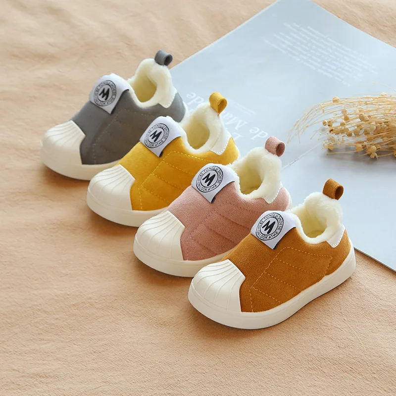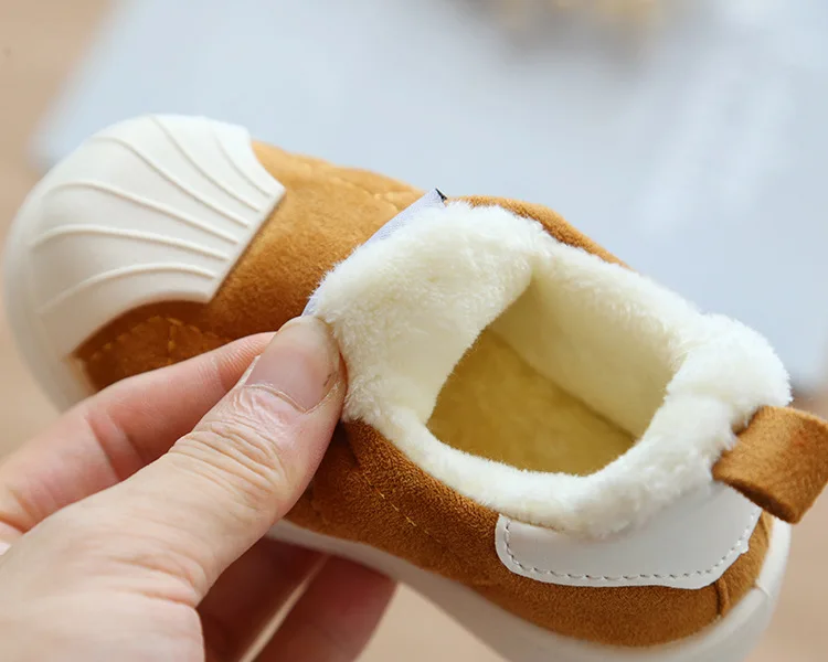 Зимние хлопковые ботинки для девочек и мальчиков, ботинки для младенцев с флисовой подкладкой, теплая уличная детская обувь, Нескользящие